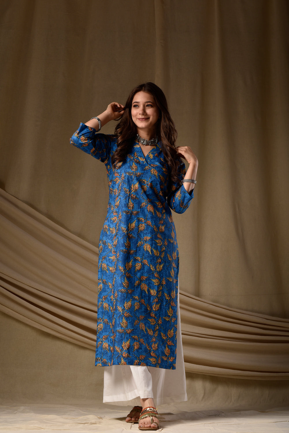 Pure cotton kurta in straight cut is made in screen print. It is soft and comfortable, can be teamed up with a variety of bottoms.