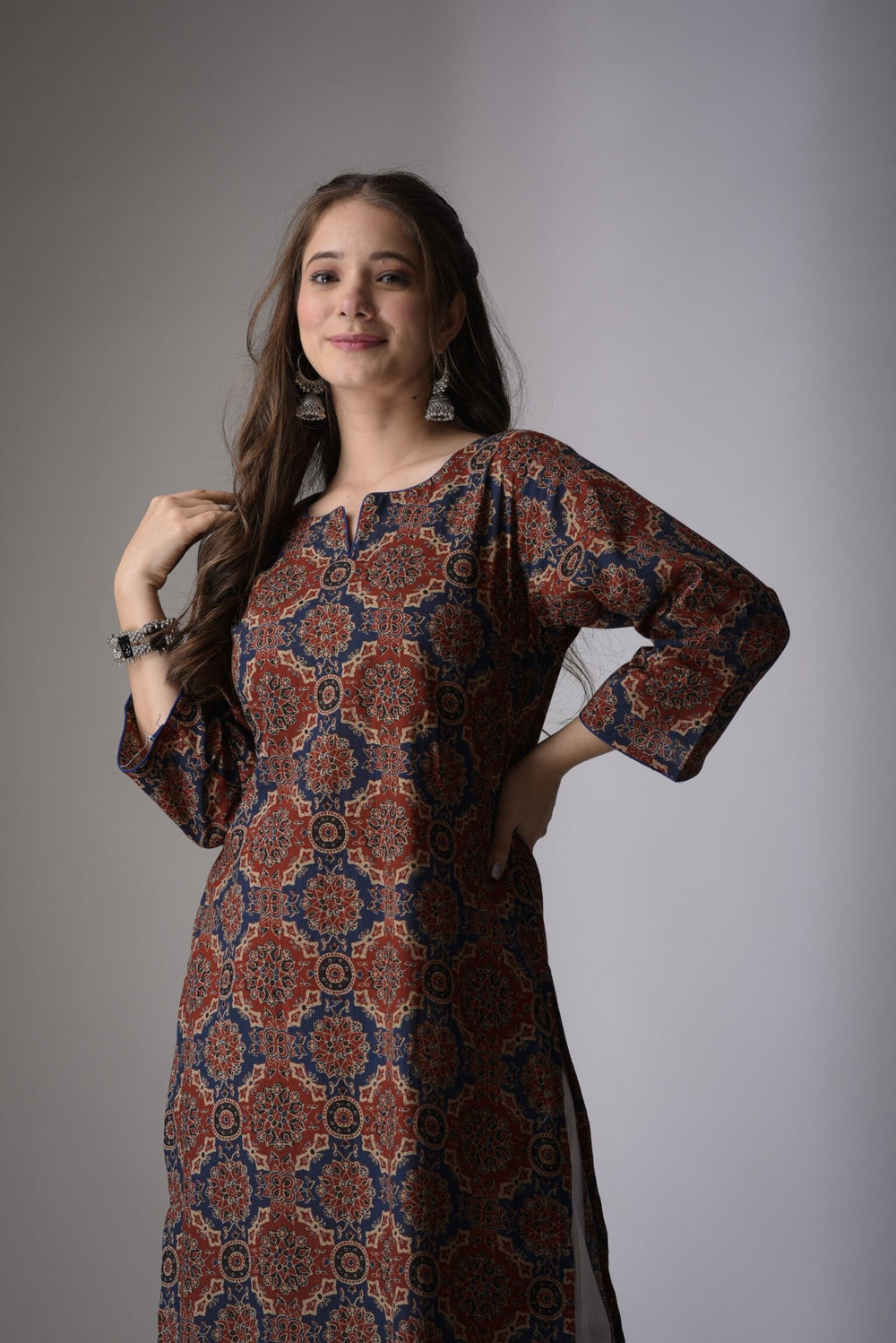 Pure cotton kurta in straight cut is made in screen print. It is soft and comfortable, can be teamed up with variety of bottoms.