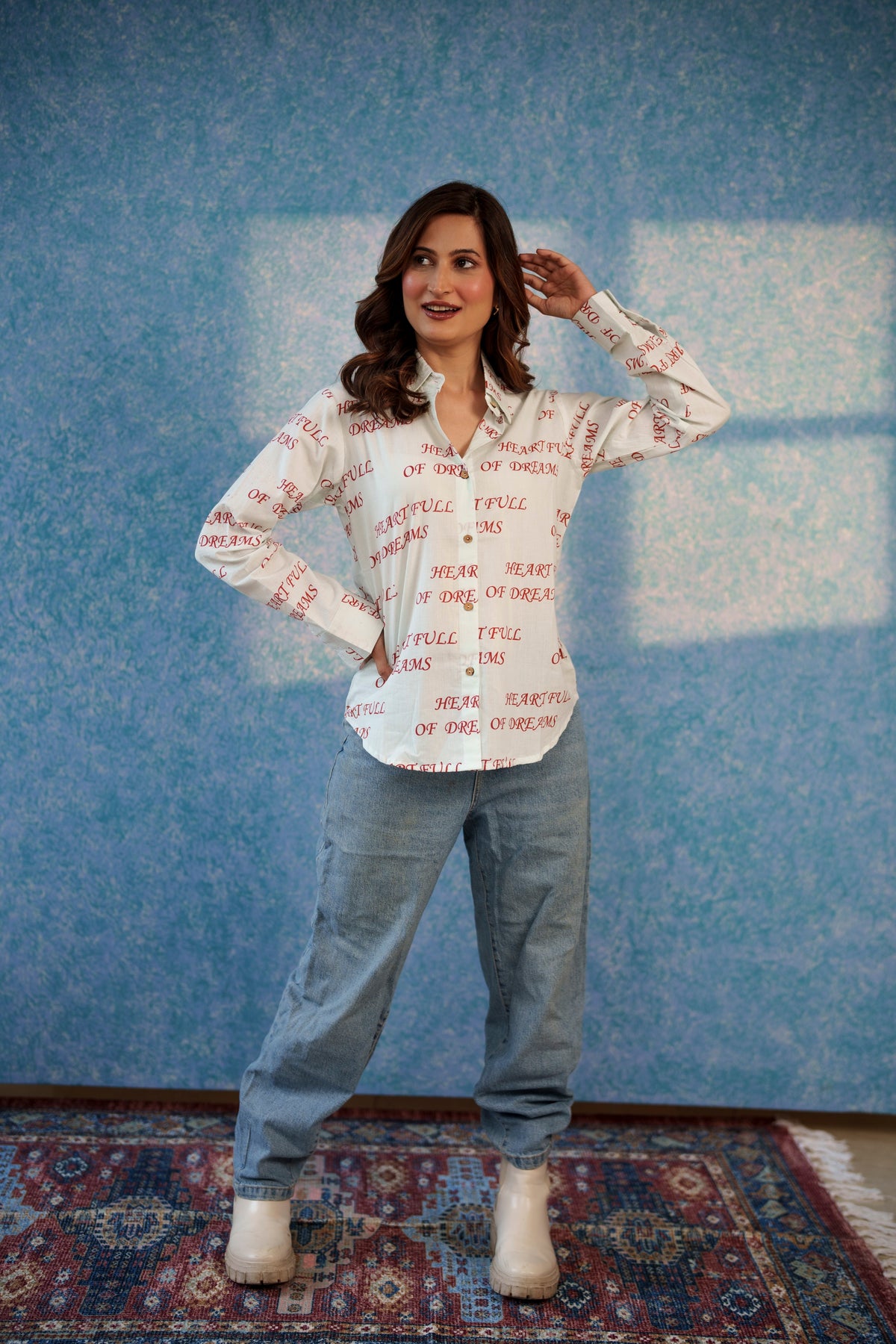 White "heart full of dreams" cotton shirt