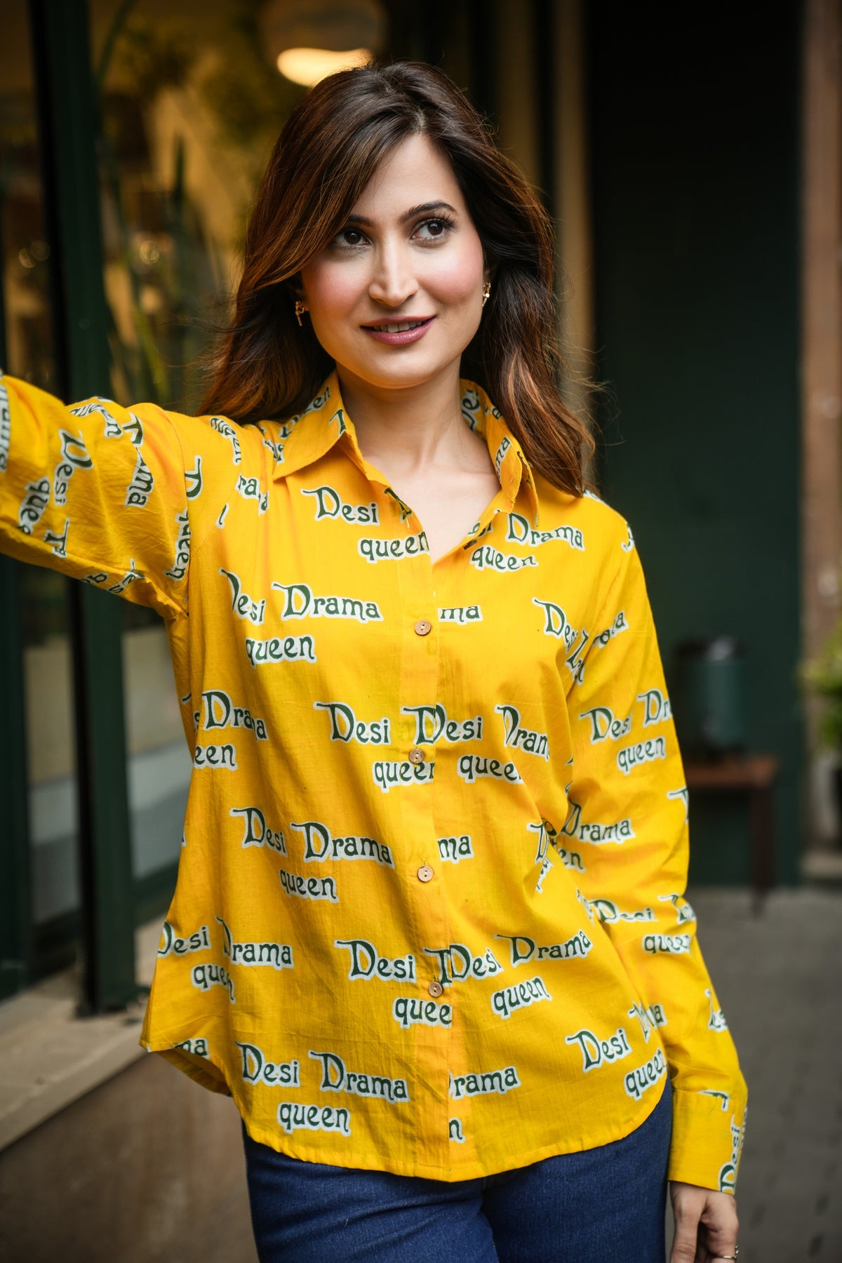 Pure cotton shirt is made in straight fit. It is made with caption in screen print. Sleeves are full with buttons.