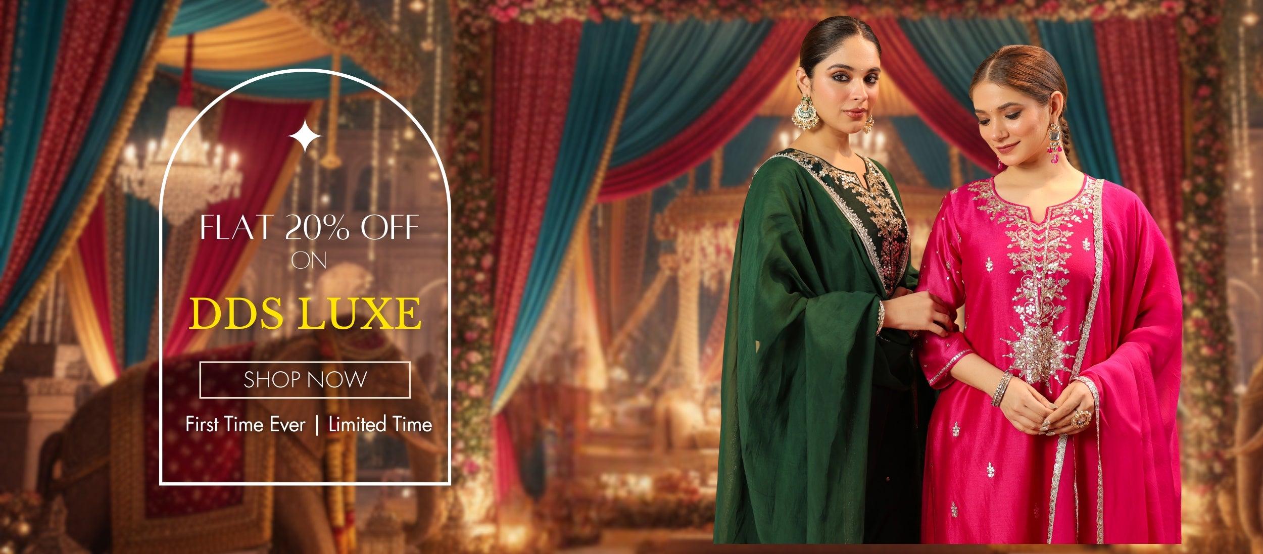 Explore our exclusive DDS Luxe collection and enjoy premium ethnic wear for all occasions. Whether you're looking for luxurious wedding suit sets, festive suit sets, or partywear, our collection has something for everyone. Don't miss out on our latest designs and special offers – shop now and indulge in luxury with Dimple Design Studio.