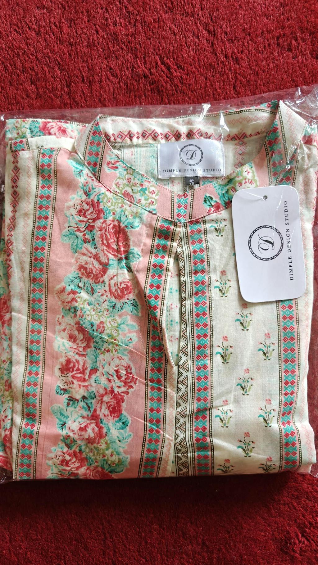 Manufactured and Packed by Dimple Design Studio, C-8/14, Chitrakoot, Jaipur 302021 (Raj.), India | Country of Origin: India | All rights reservedThis is amazing suit, comfortable summer friendly. Its pure cotton .sensitive body can buy this beautiful suit. I just love it. Thank you so much DDS ❤️