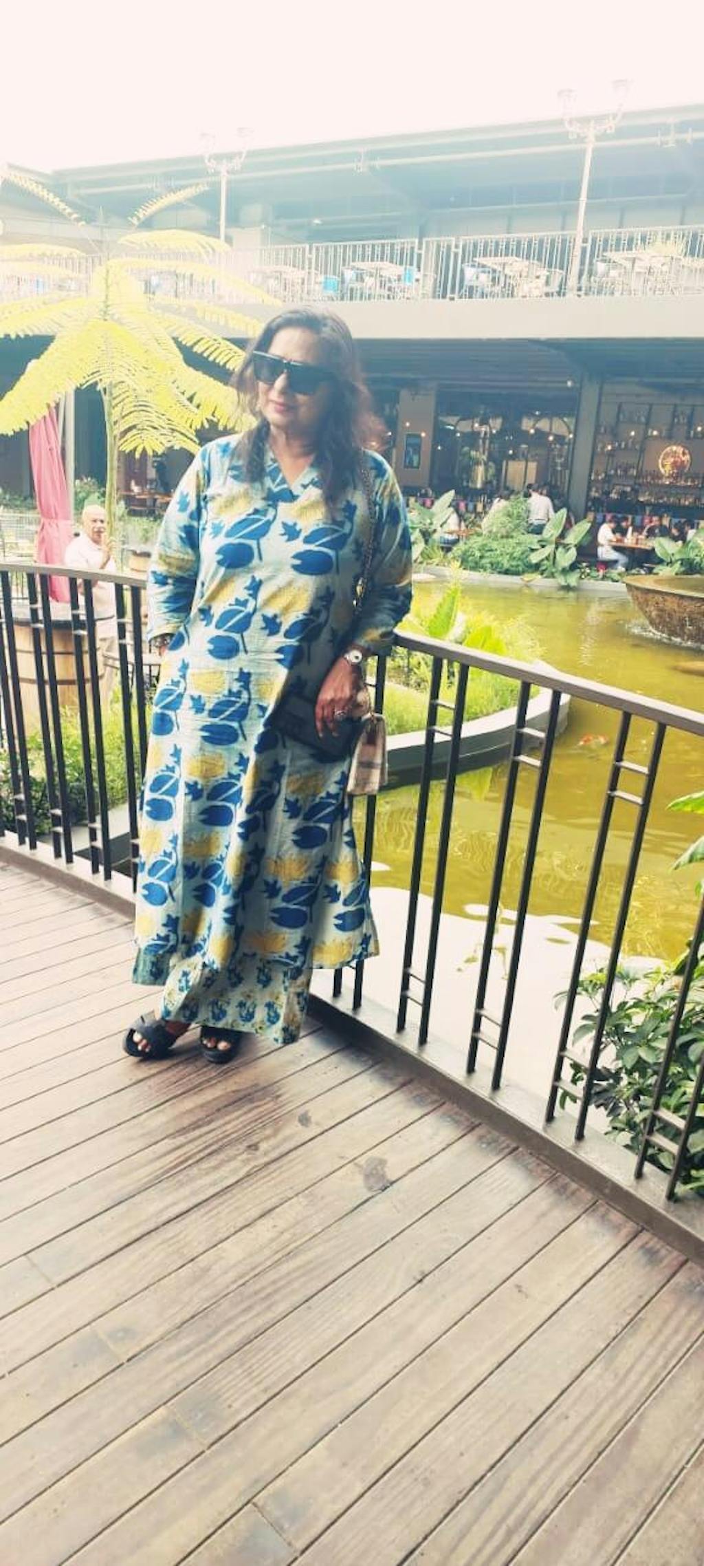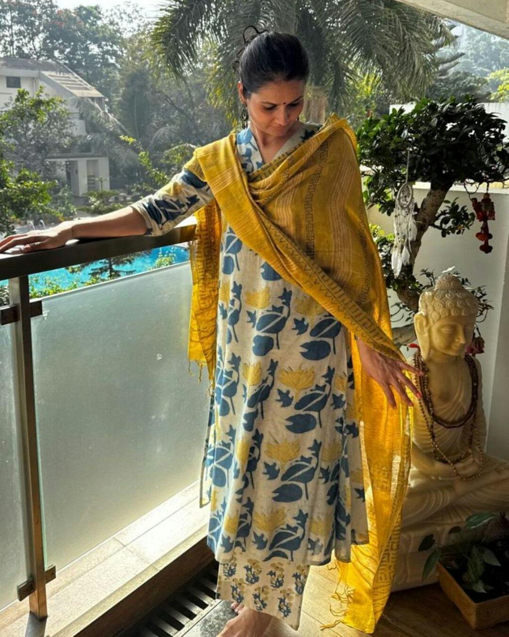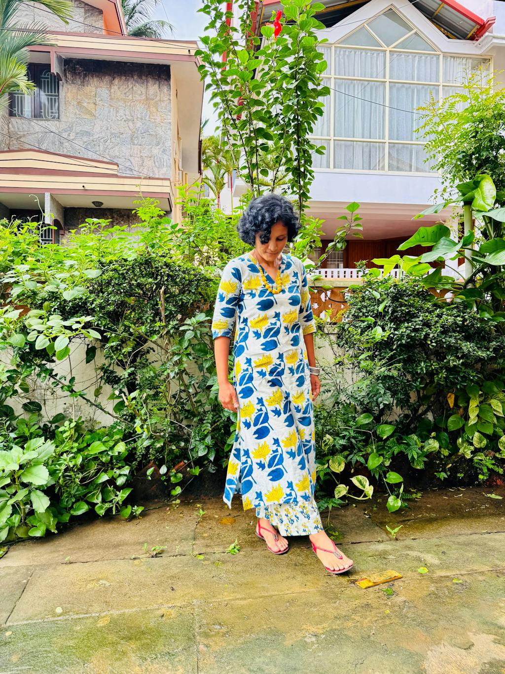 Pure cotton kurta with palazzo is crafted in Jahota print which has both syahi begar and dabu printing technique. The kurta and palazzo set comes with side pockets. This kurta has an A- line silhouette for comfort fit.