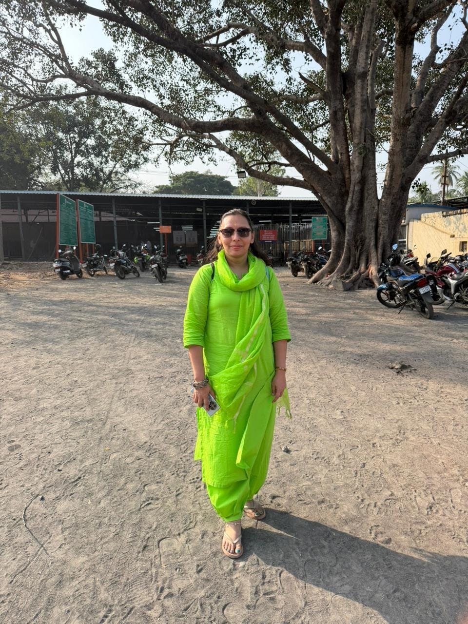 Lime green color kurta with pleated pants and kota doria dupatta. This beautiful outfit is made in pure cotton.
