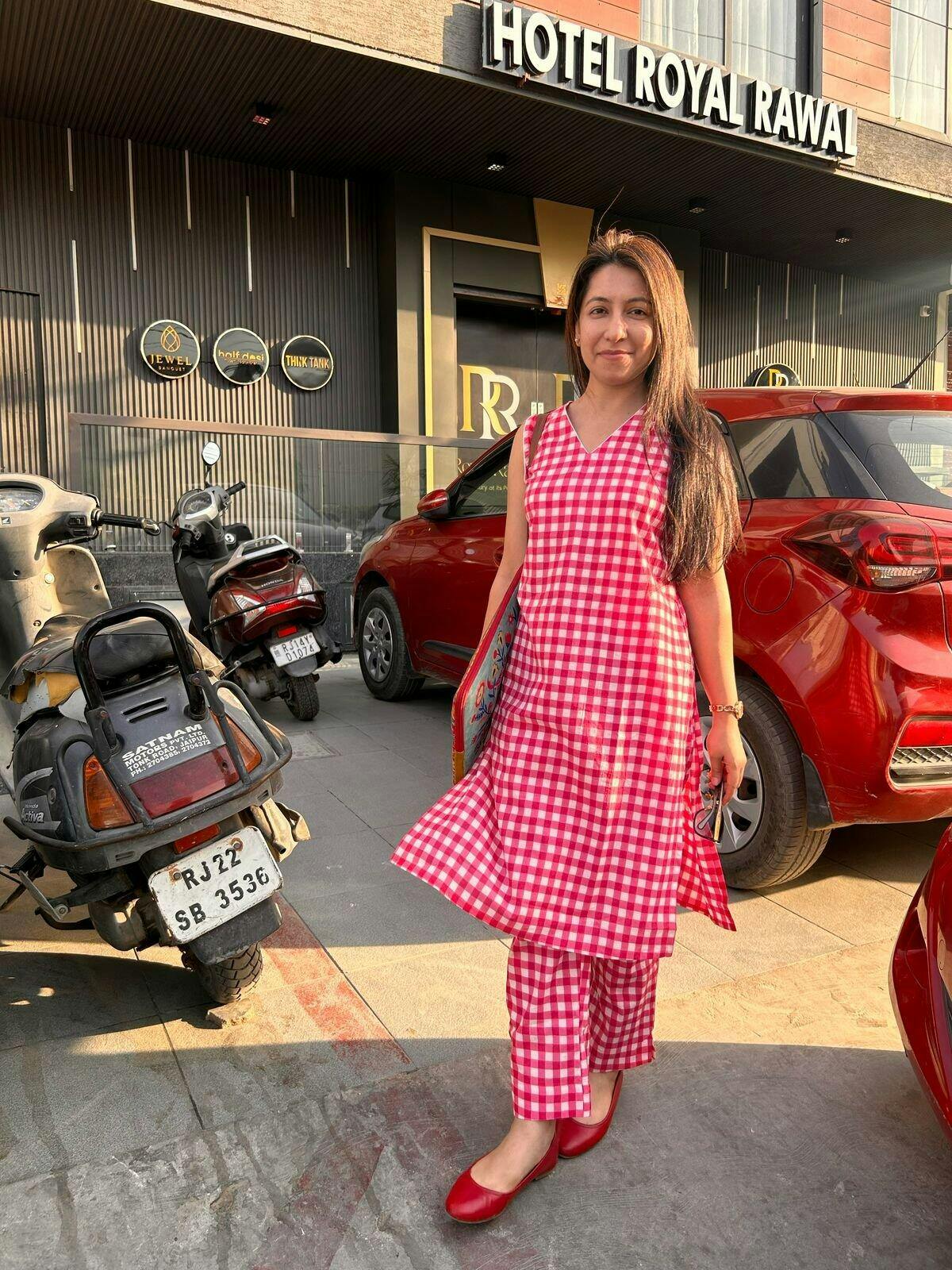 Pure cotton kurta with pants is crafted in screen print. The kurta is sleeveless and short in length.