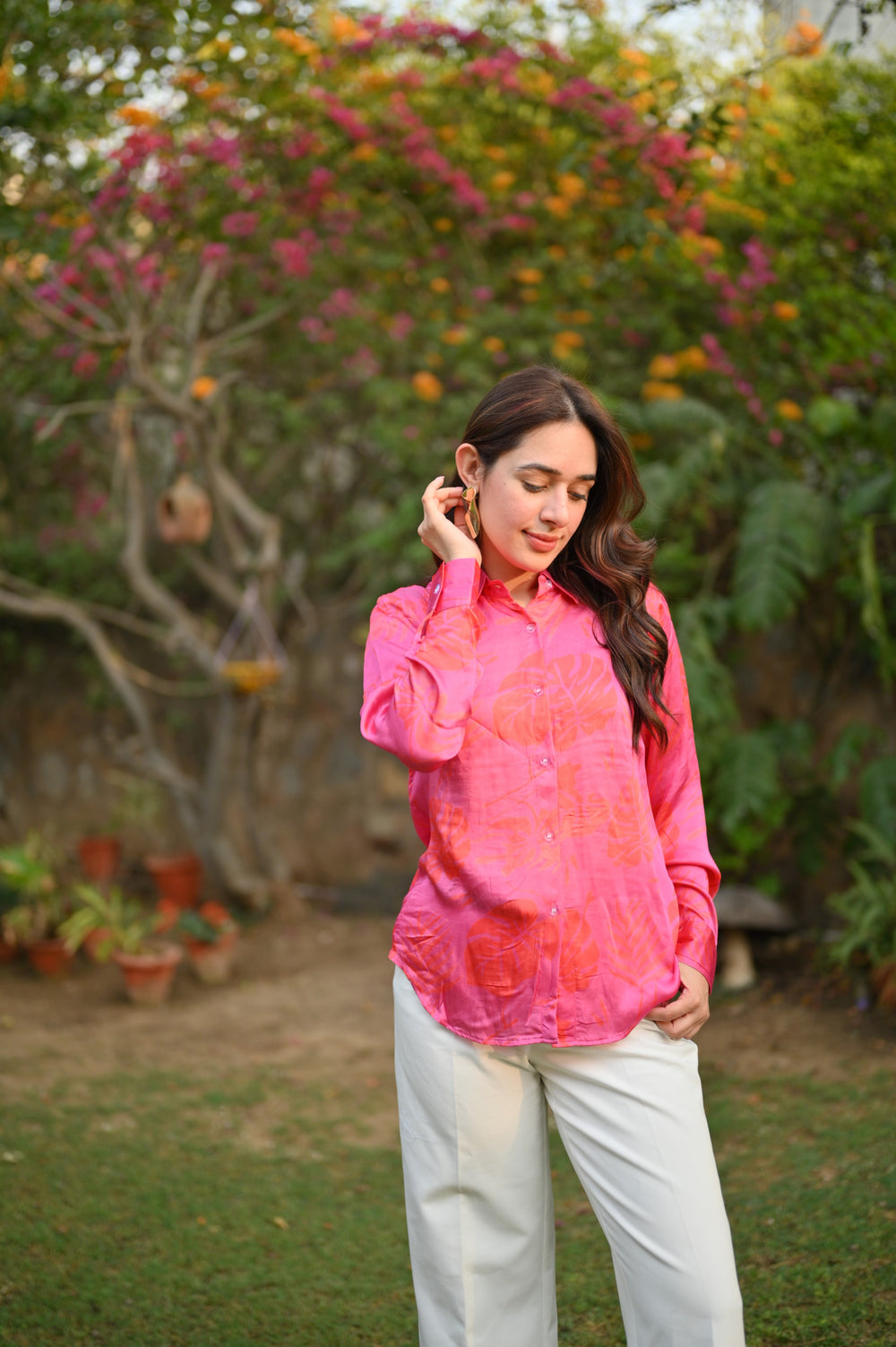 Modal satin shirt is made in straight fit. It is made in floral motifs made in digital print. Sleeves are full with buttons.