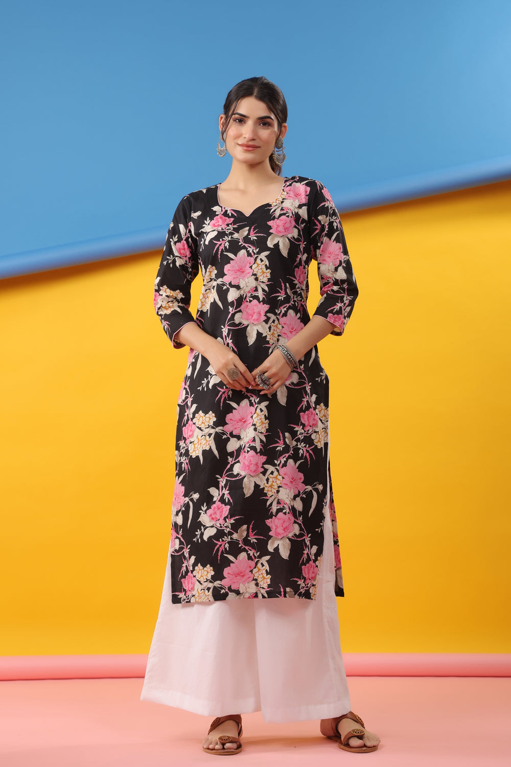 Black Pink Straight Kurta