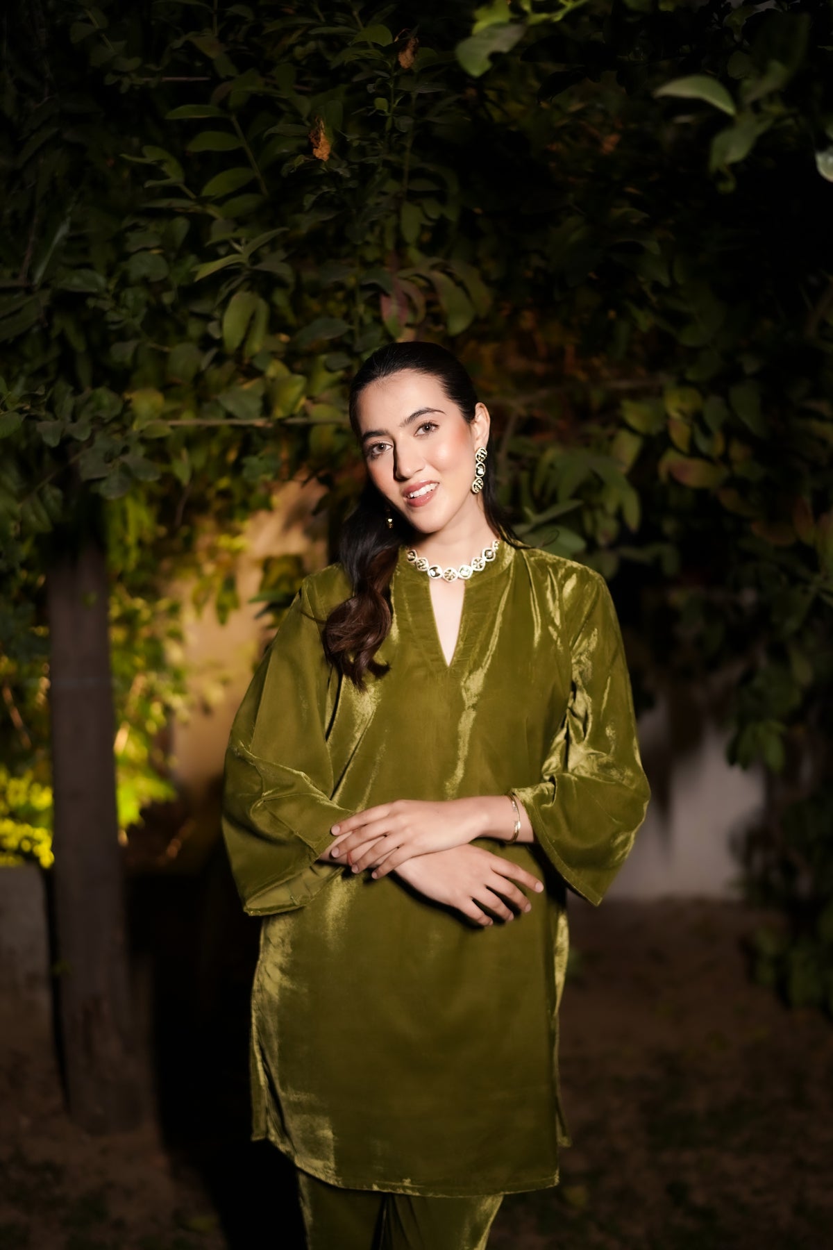 Olive Green Velvet Co-ord Set