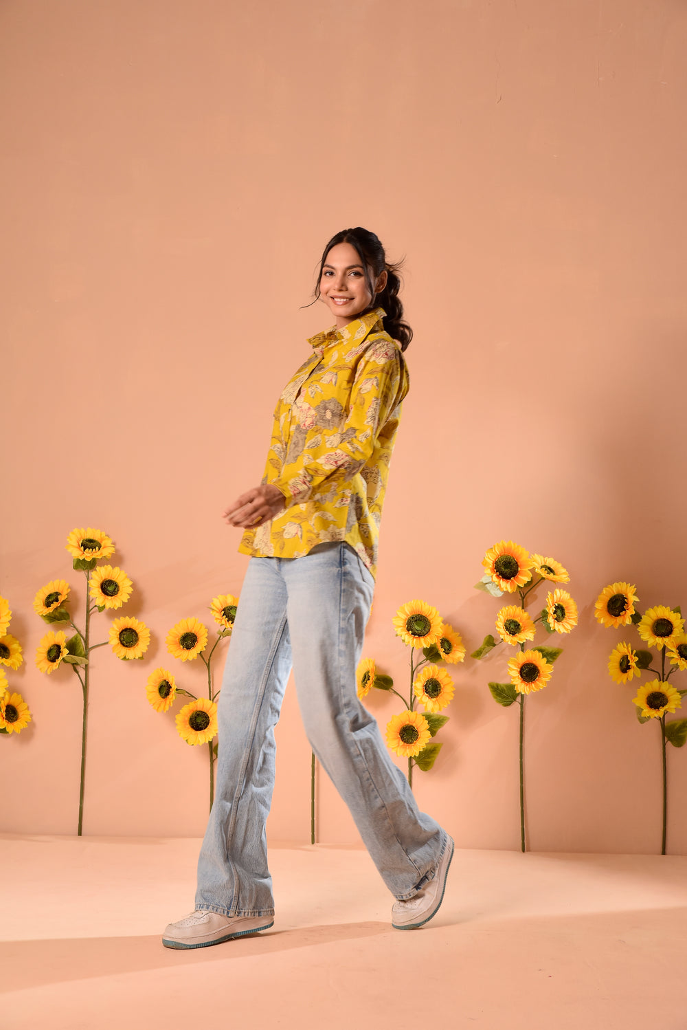 Pure cotton shirt is made in a straight fit. It is made in digital print with floral motifs all over it. Sleeves are full of buttons.