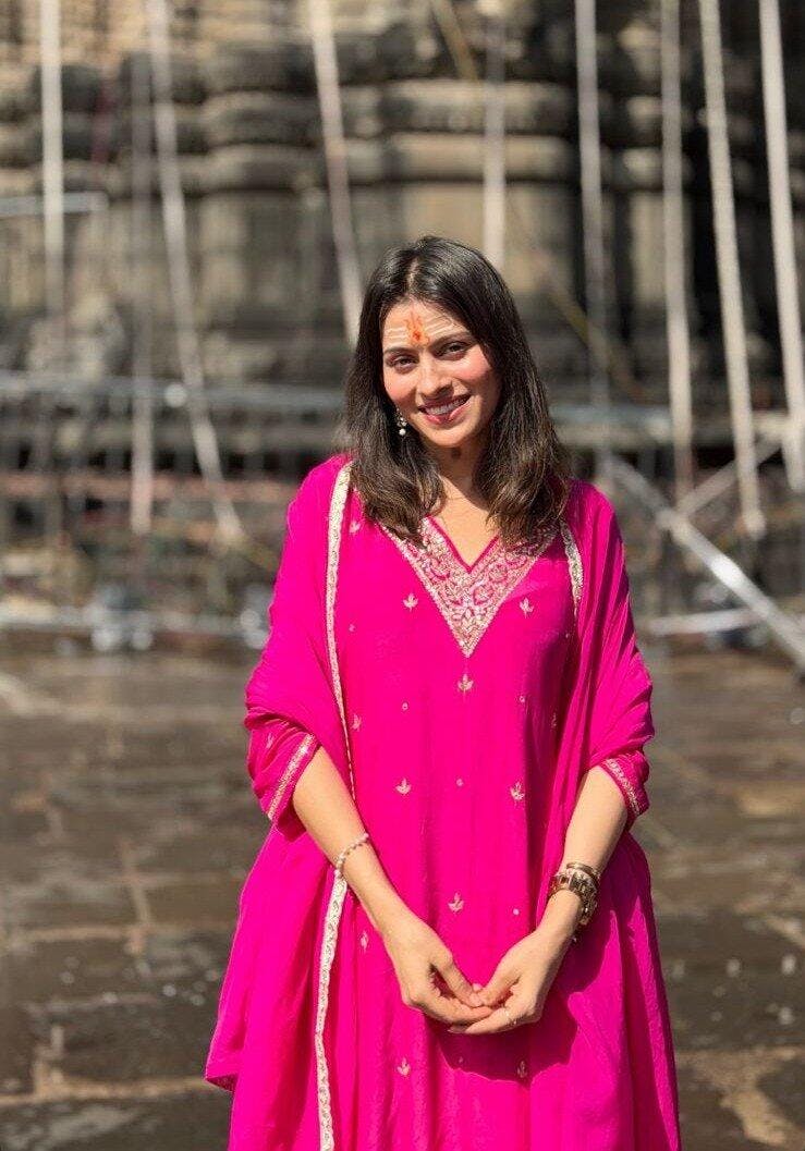 The kurta set is crafted in cotton chanderi which has beautiful gota patti hand embroidery near neckline. Kurta has soft lining. Pants are in soft cotton chanderi and straight cut. It has side pockets with front drawstrings.